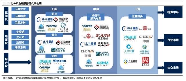 北斗系統(tǒng)架構(gòu)可以分為空間段、地面段和用戶段,其中空間段和用戶段的建設(shè)主要由央企承擔(dān),在20年北斗三組網(wǎng)成功之后,空間段和地面段的建設(shè)基本完成,未來增量主要在用戶段。
